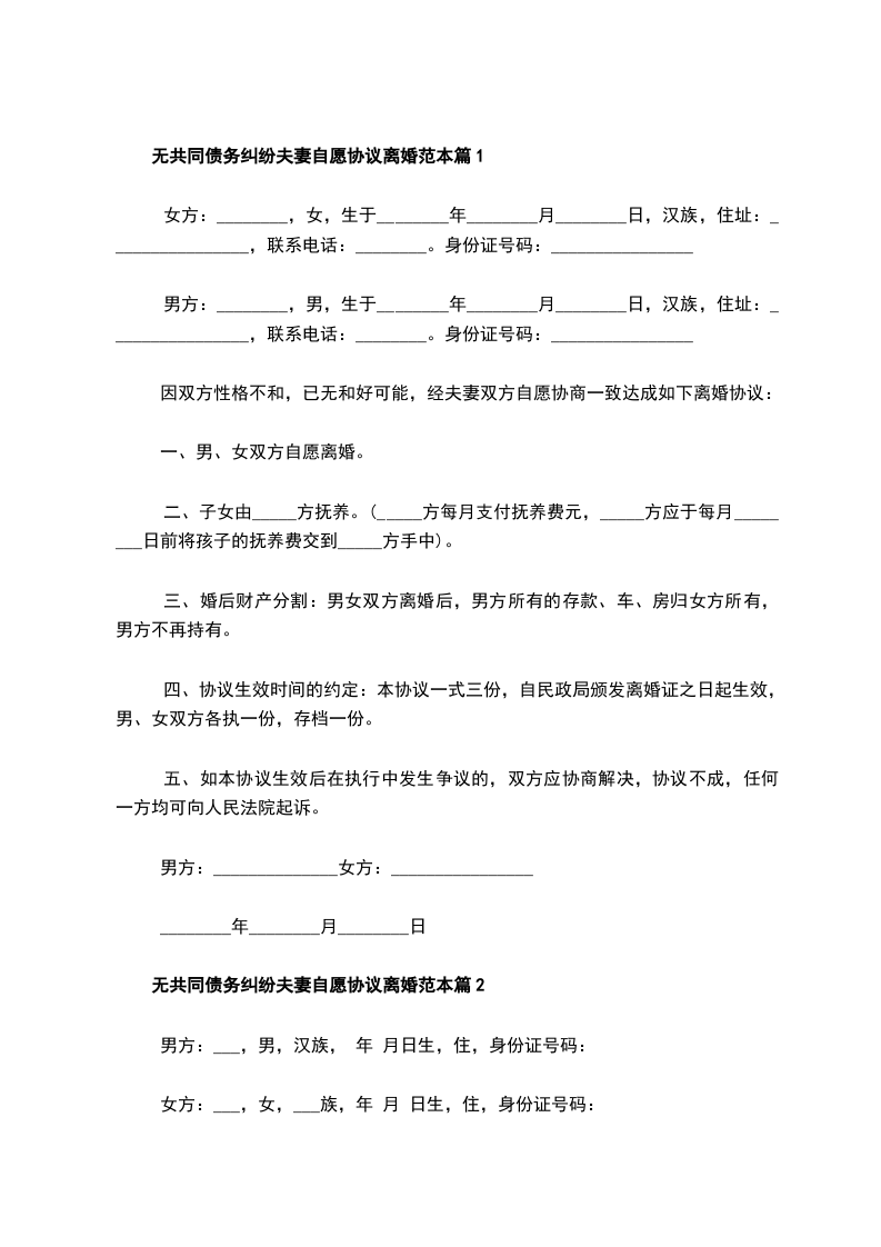 无债务纠纷夫妻自愿离婚协议格式篇7
