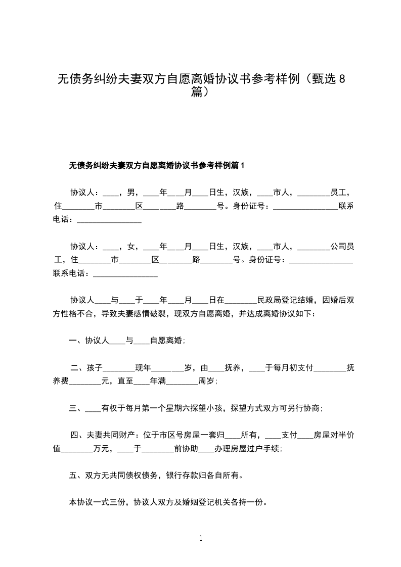 无债务纠纷夫妻自愿离婚协议格式篇8