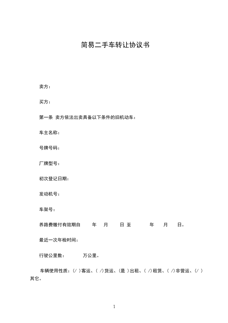 车辆使用性质:(/ )客运、( /)货运、(是 )出租、( /)租赁、( /)非营运、(/ )其它。