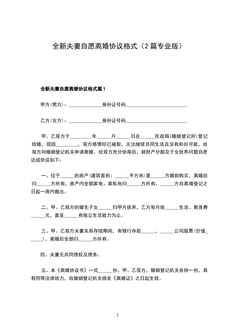因双方性格不和,已无和好可能,经夫妻双方自愿协商一致达成如下离婚协议: