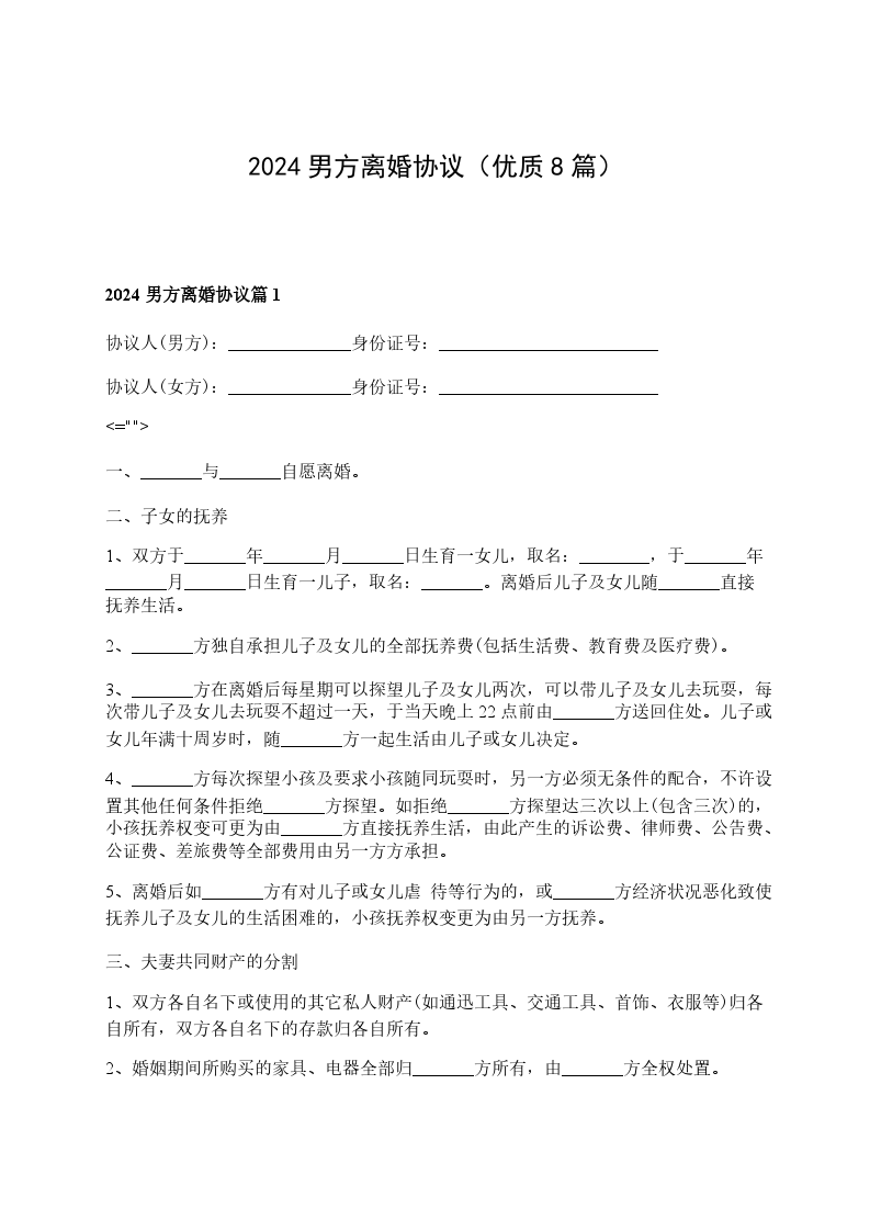 2024男方协议离婚书篇8