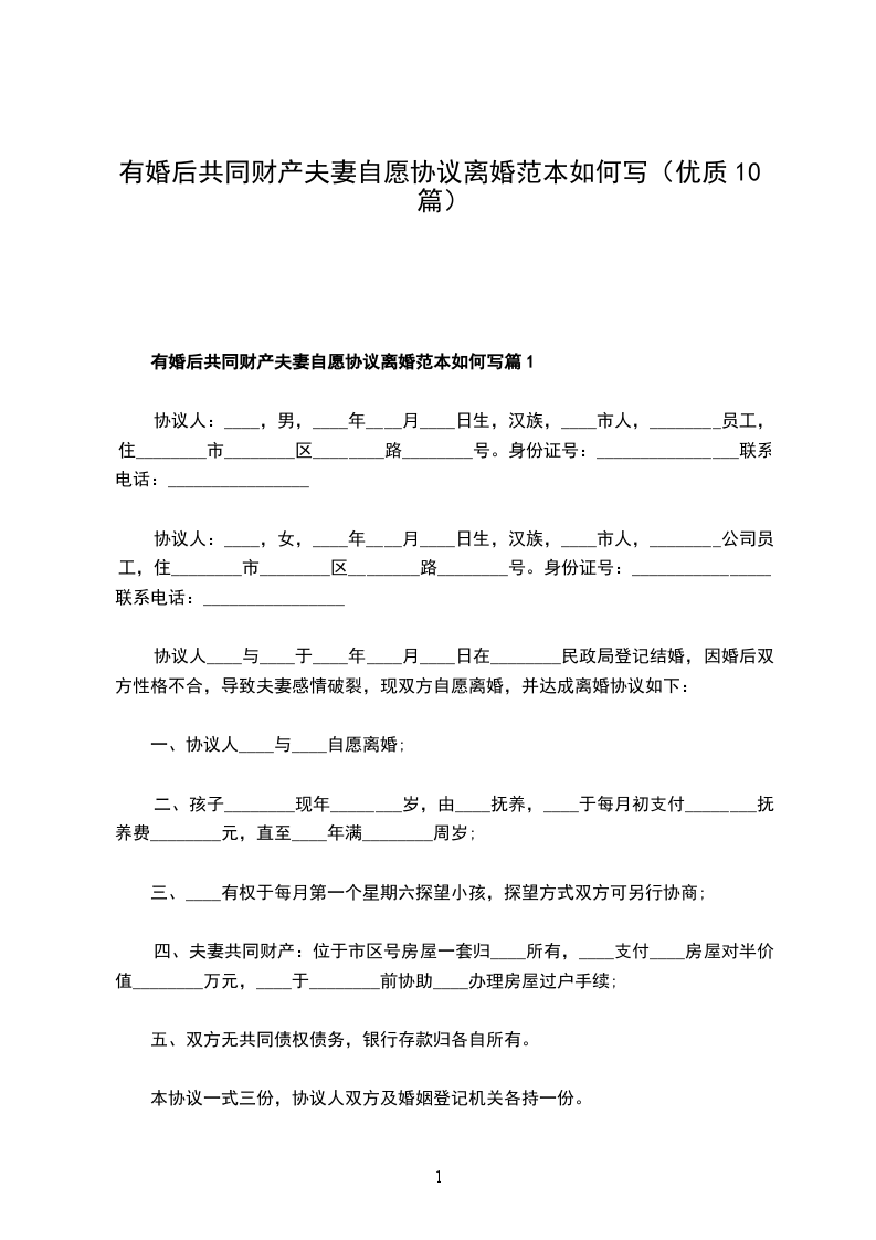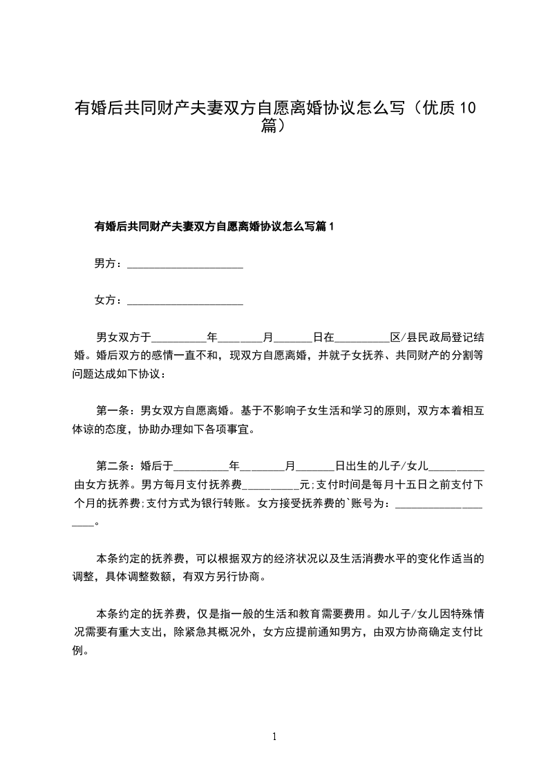 有婚后共同财产夫妻离婚协议如何写篇10