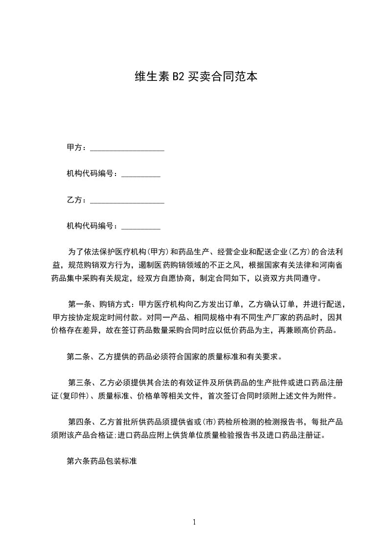 为了依法保护医疗机构(甲方)和药品生产、经营企业和配送企业(乙方)的合法利益,规范购销双方行为,遏制医药购销领域的不正之风,根据国家有关法律和河南省药品集中采购有关规定,经双方自愿协商,制定合同如下,以资双方共同遵守。