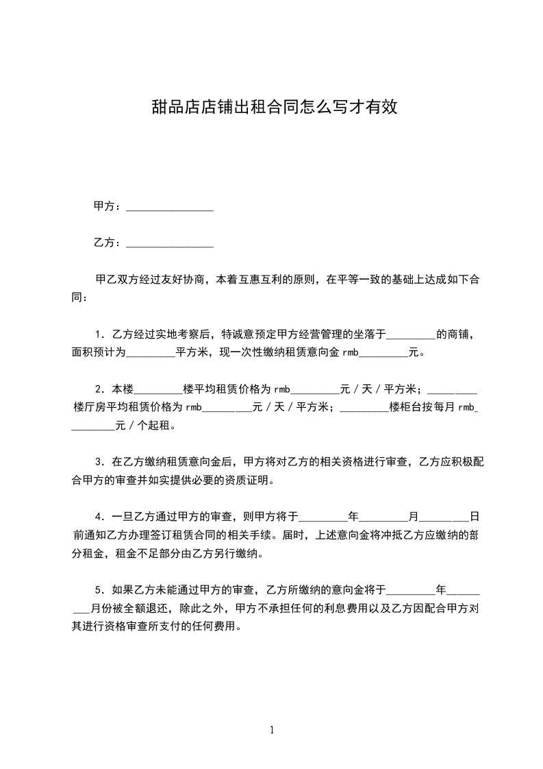 1.乙方经过实地考察后,特诚意预定甲方经营管理的坐落于_________的商铺,面积预计为_________平方米,现一次性缴纳租赁意向金rmb_________元。