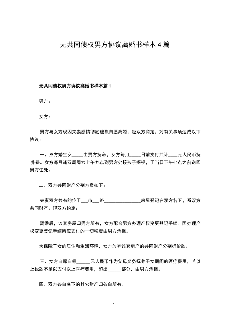 (1)男女双方确认在婚姻关系存续期间无共同债务。