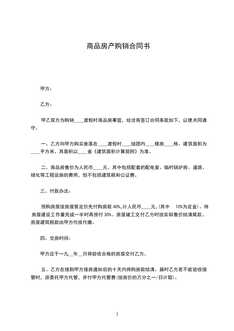 甲乙双方为购销____渡假村商品房事宜,经洽商签订合同条款如下,以便共同遵守。