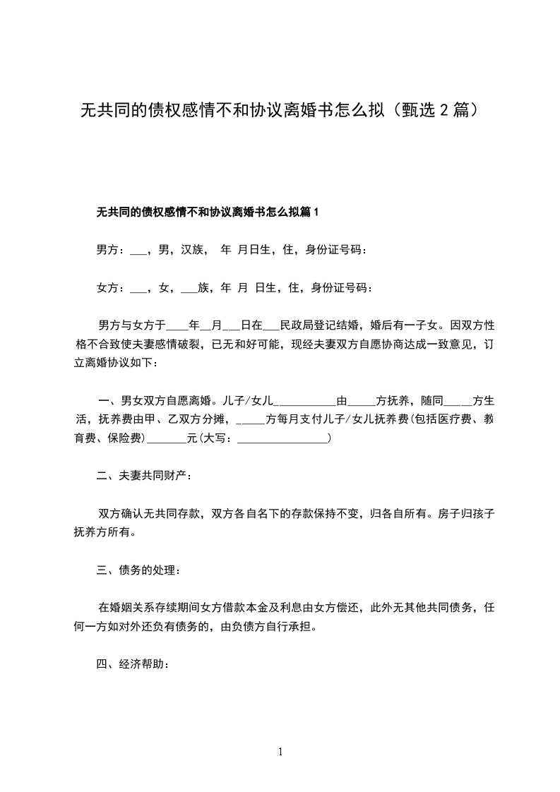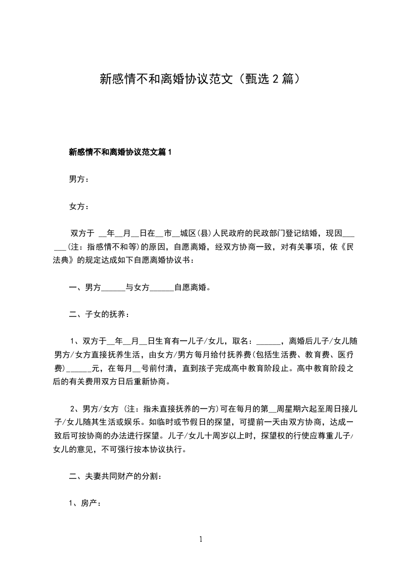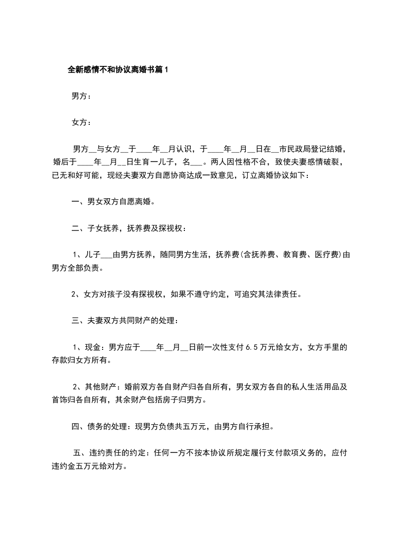 男女双方于_______年_______月_______日在_______民政局(办)办理结婚登记手续。_______年_______月_______日生育一子(女)_______(身份证号:______________)。因协议人双方性格不合,夫妻感情破裂,无法继续共同生活,已无和好可能。现双方就自愿离婚一事达成如下协议: