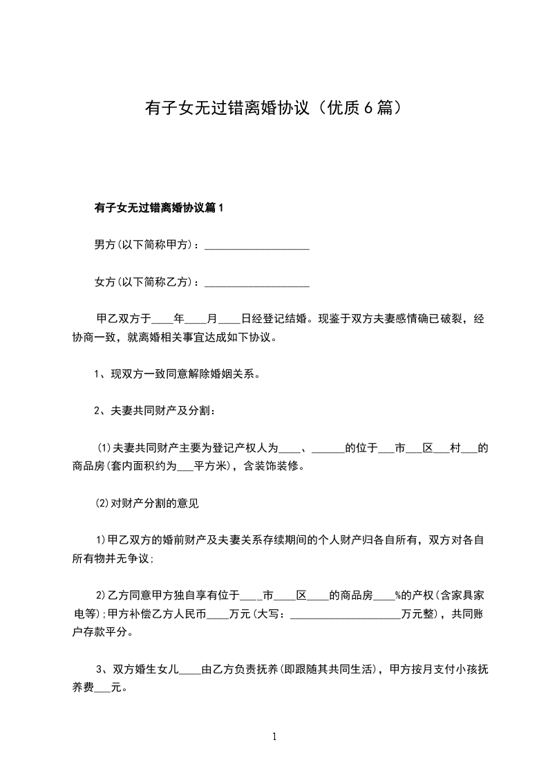 有子女离婚协议格式篇6
