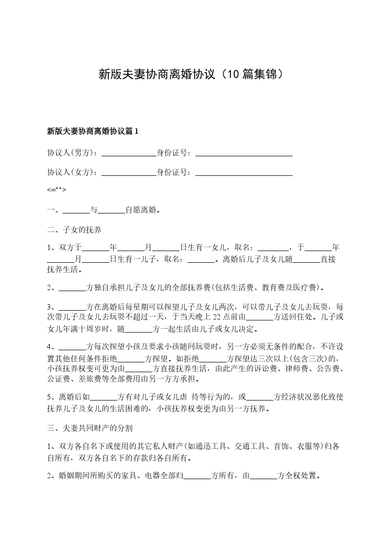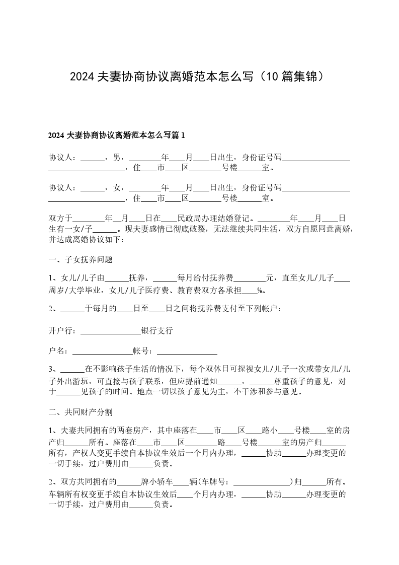 2024夫妻协商协议离婚范本怎么写篇10