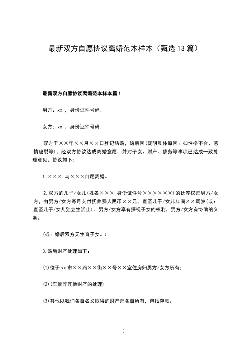 有房双方自愿协议离婚范本样本篇13