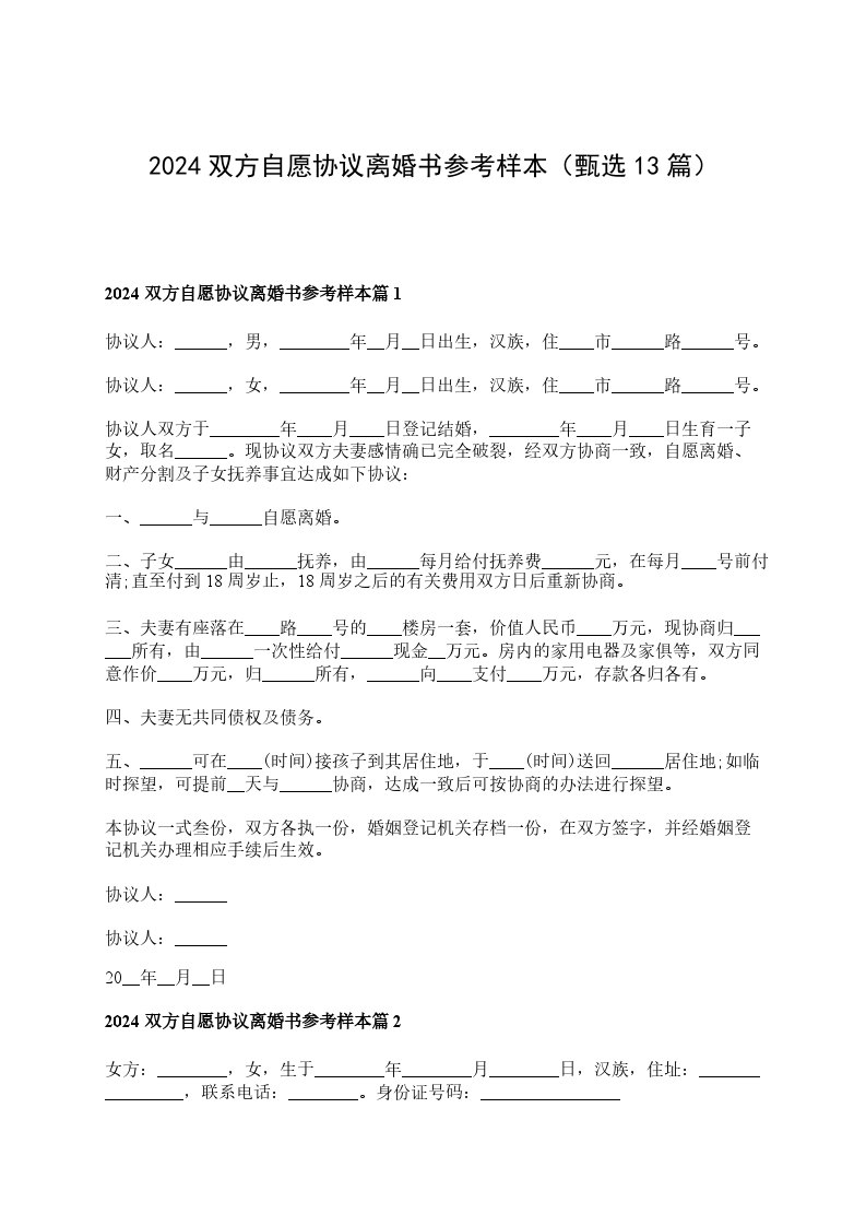 本协议书系双方真实意思表示,上述内容全部真实有效,一旦提供虚假情况,双方当事人自愿承担一切法律后果。本协议书一式____份,婚姻登记机关存档____份,双方各执____份,双方签字,并经婚姻登记机关办理离婚登记后生效。
