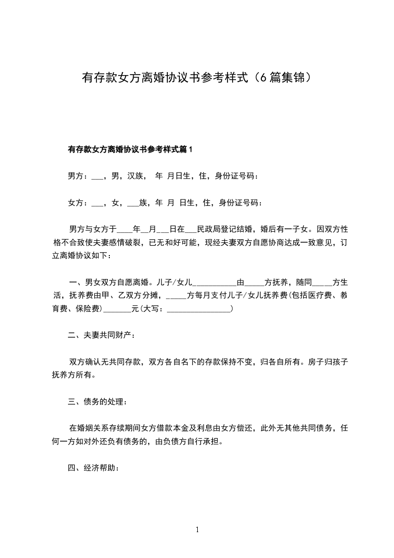 男方与女方于____年__月___日在___民政局登记结婚,婚后有一子女。因双方性格不合致使夫妻感情破裂,已无和好可能,现经夫妻双方自愿协商达成一致意见,订立离婚协议如下: