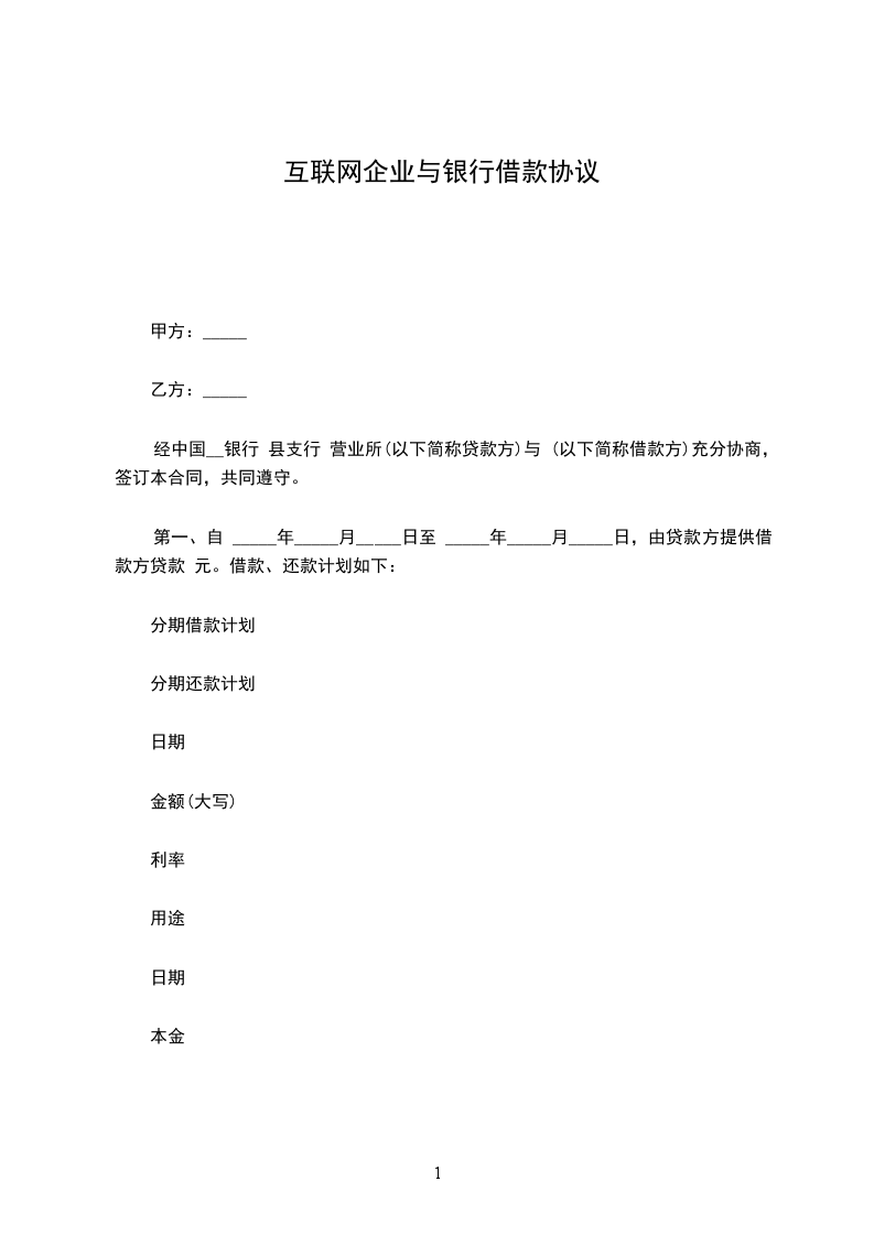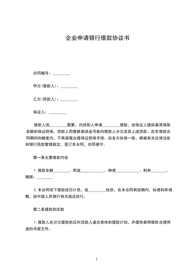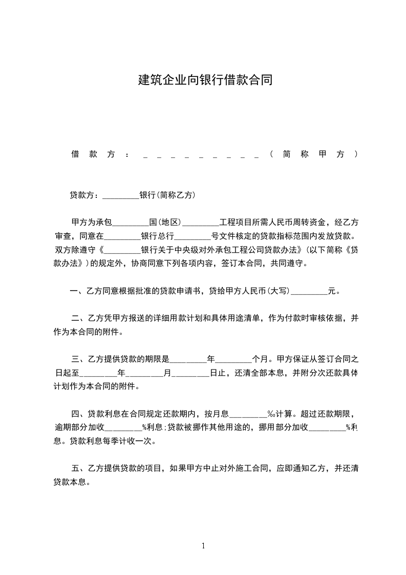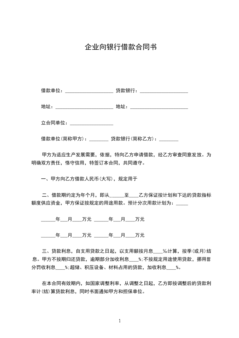 借款单位(简称甲方):________ 贷款银行(简称乙方):________