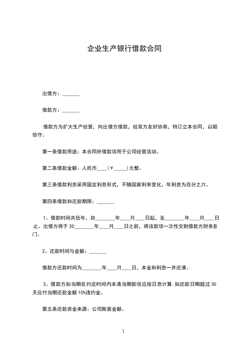 三、贷款利息,自支用贷款之日起,以支用额按月息____‰计算,按季(或月)结息。甲方不按期归还贷款,逾期部分加收利息____%;不按规定用途使用贷款,挪用部分罚收利息____%;超储、积压设备、材料占用的贷款,加收利息____%。
