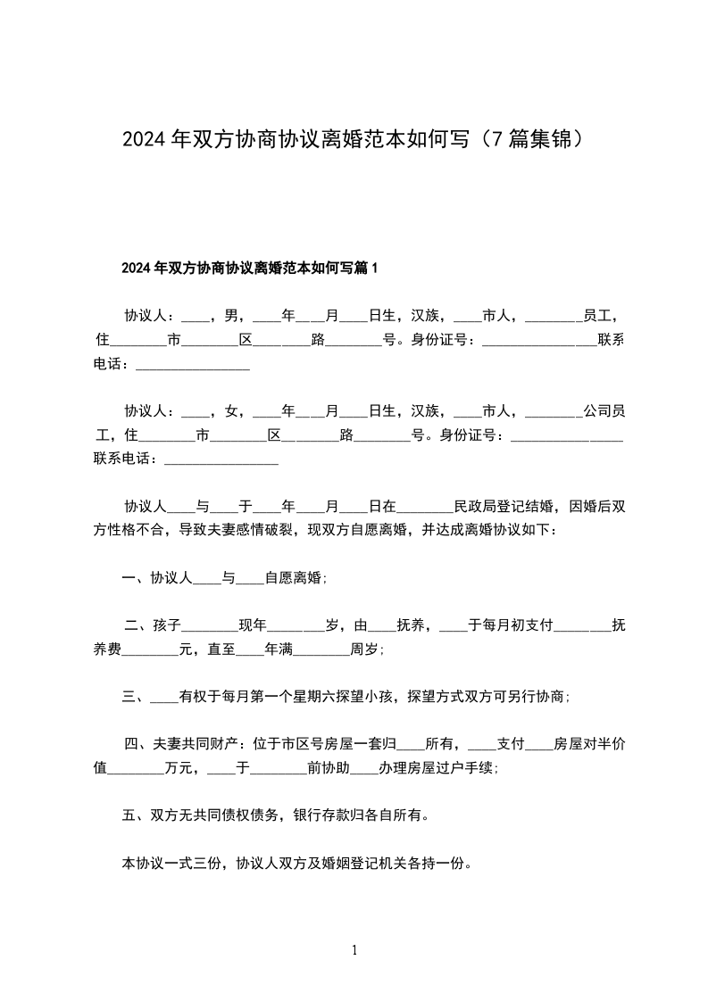 男方______与女方______于______年______月认识,于______年______月______日在______市民政局登记结婚,婚后于______年______月______日生育一儿子,名______。两人因性格不合,致使夫妻感情破裂,已无和好可能,现经夫妻双方自愿协商达成一致意见,订立离婚协议如下: