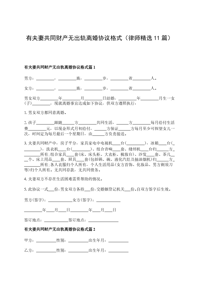 有夫妻共同财产无出轨离婚协议模板篇9