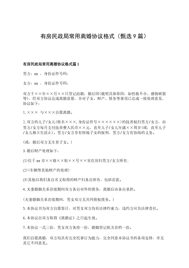 有房子民政局常用离婚协议书参考样式篇9