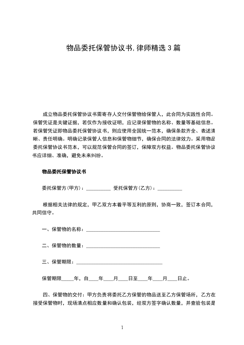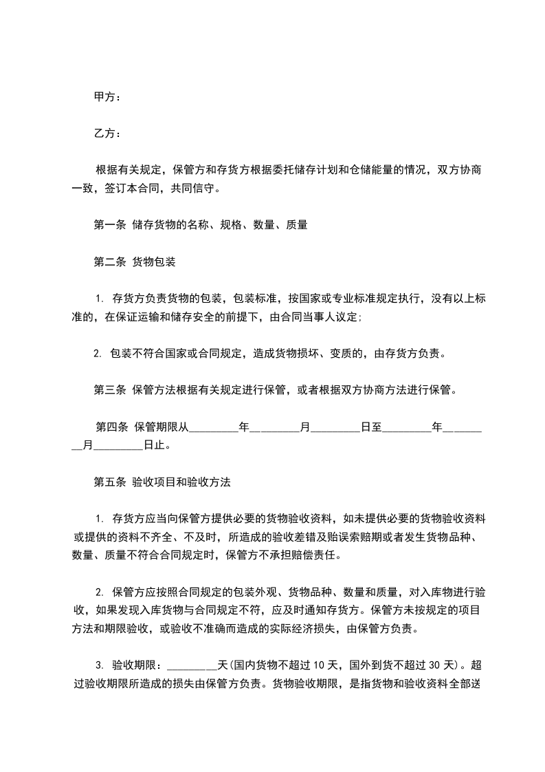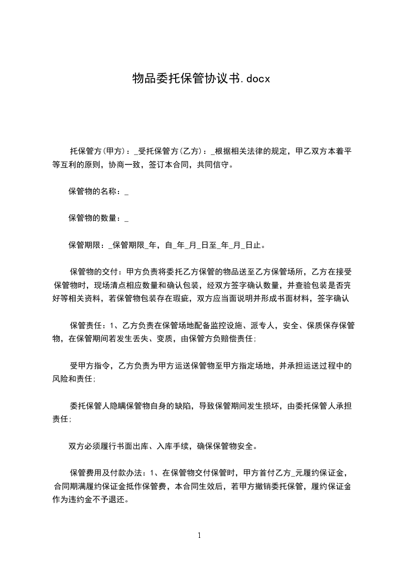 委托保管方(甲方):__________ 受托保管方(乙方):__________