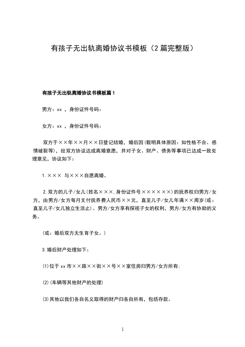 有孩子无出轨离婚协议书模板篇1