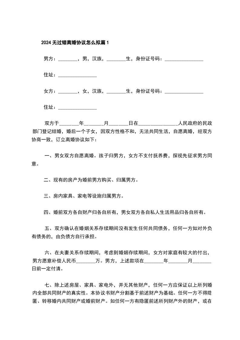 乙方:(男方):_______________,男,汉族,生于_____年__月__日,住________________________________