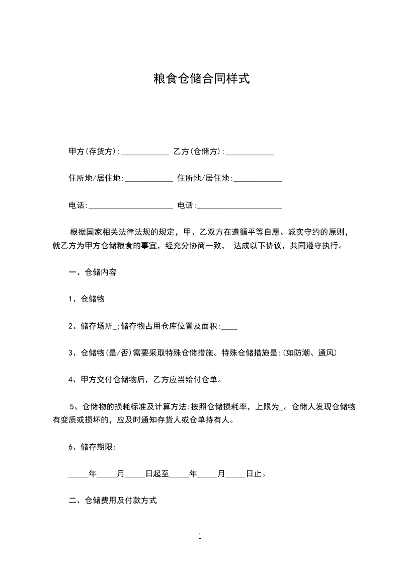 根据国家相关法律法规的规定,甲、乙双方在遵循平等自愿、诚实守约的原则,就乙方为甲方仓储粮食的事宜,经充分协商一致, 达成以下协议,共同遵守执行。