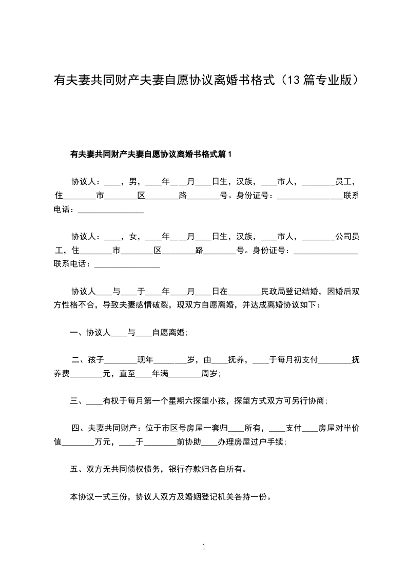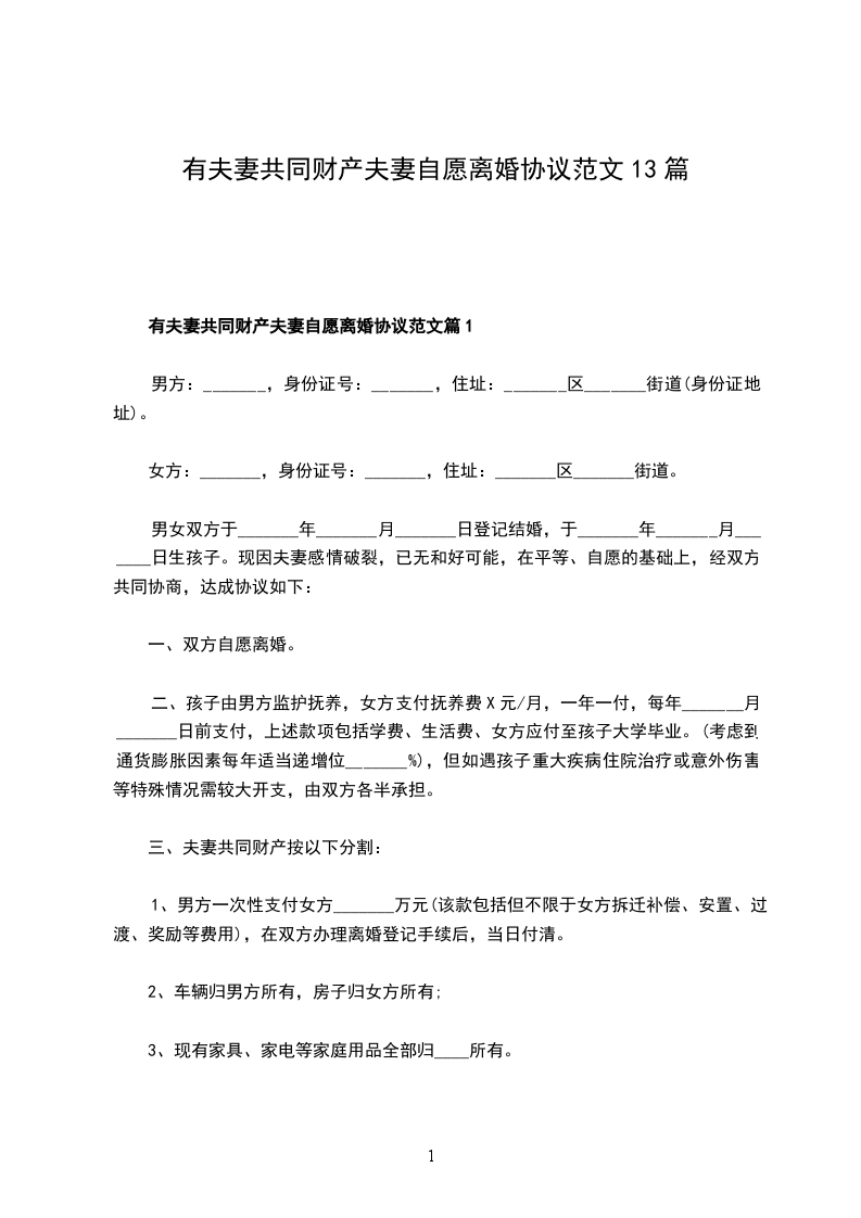 有夫妻共同财产夫妻自愿离婚协议范文篇13