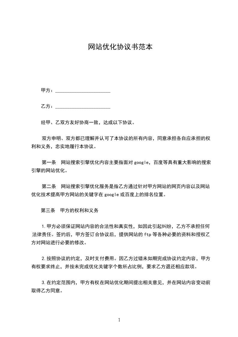 3.在约定范围内,甲方有权在网站优化期间提出相关意见,并在网站内容变动前取得乙方同意。