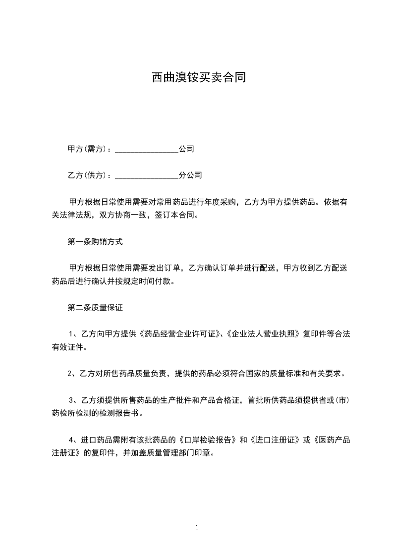 3、乙方须提供所售药品的生产批件和产品合格证,首批所供药品须提供省或(市)药检所检测的检测报告书。