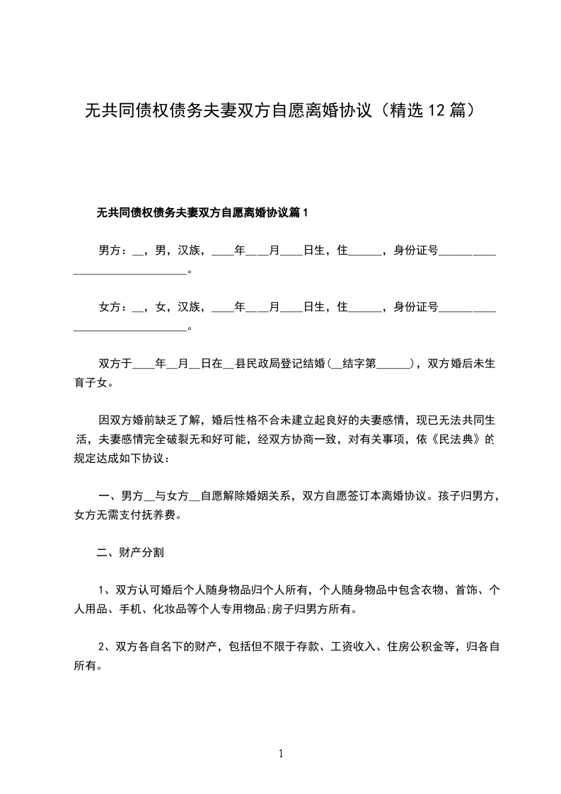 四、夫妻双方无共同债权、债务的享有和清偿情况。