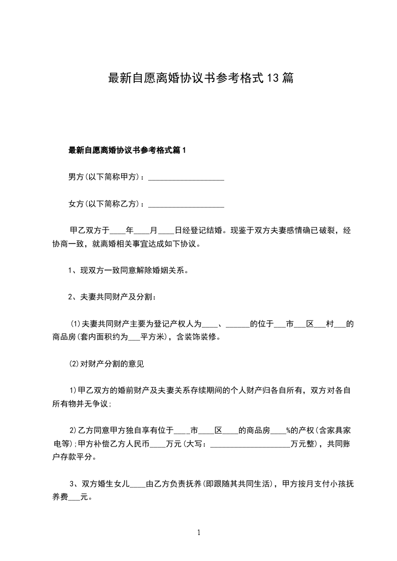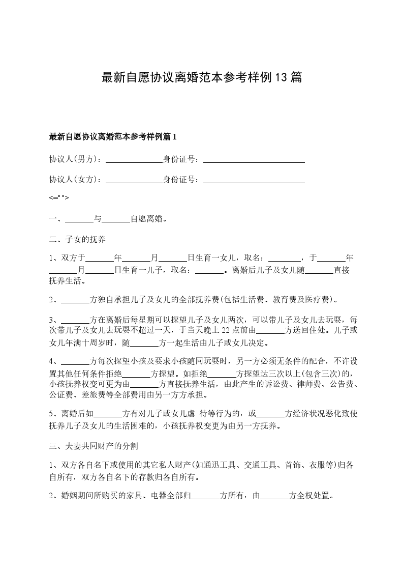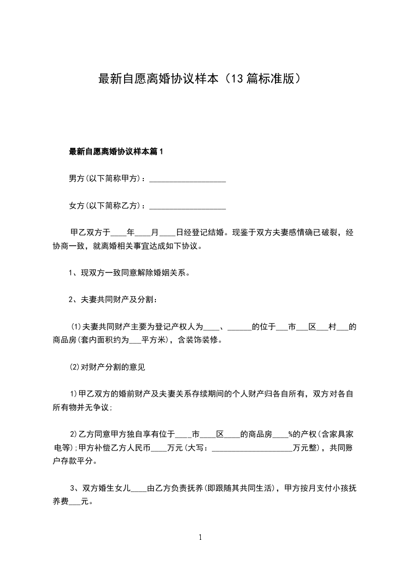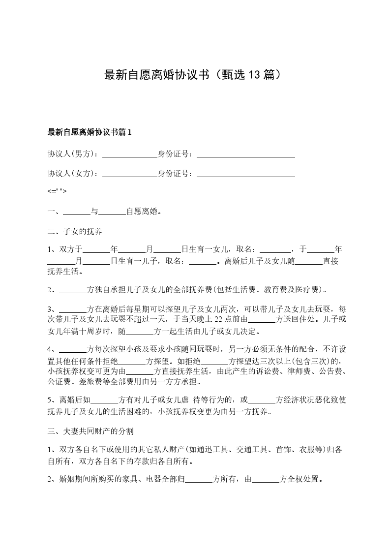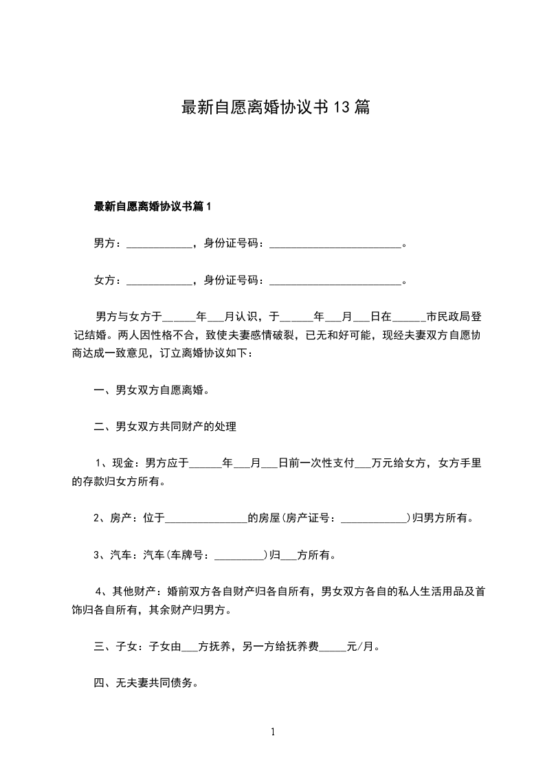 最新自愿离婚协议书篇13