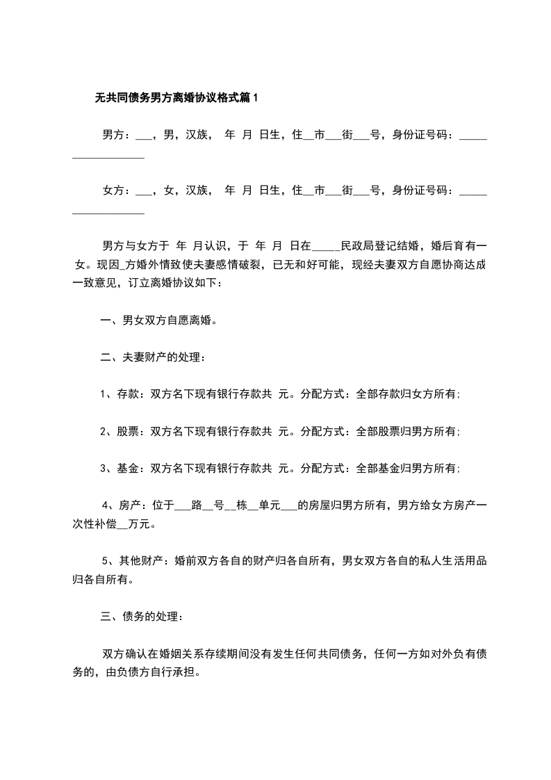 男方:__,男,汉族,____年____月____日生,住______,身份证号______________________________。
