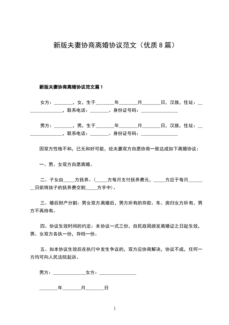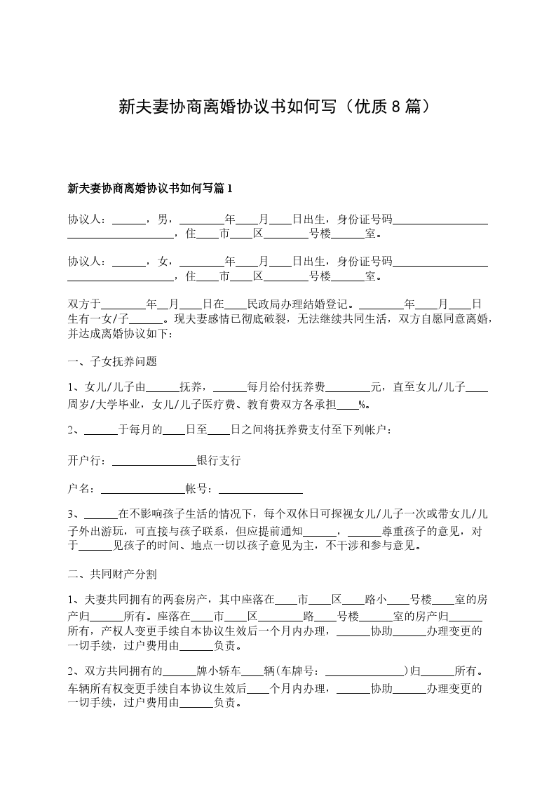 新夫妻协商离婚协议参考格式篇8