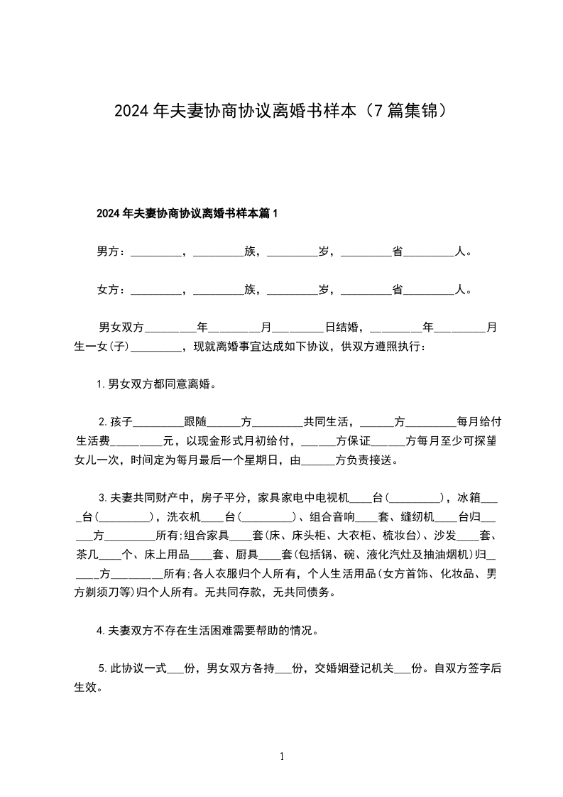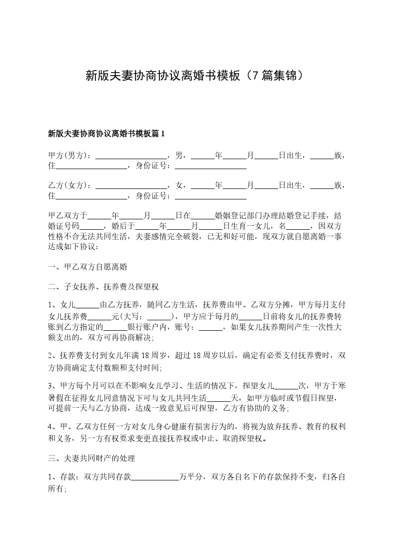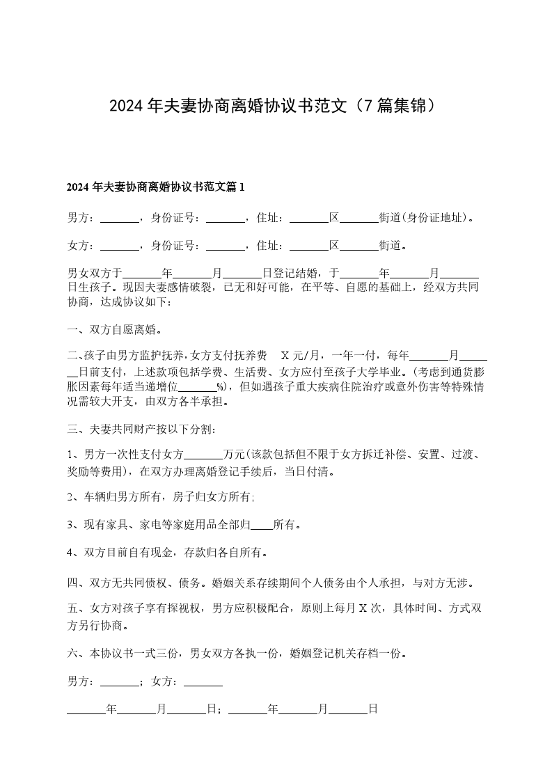 7.本协议一式三份,男女双方各持一份,婚姻登记机关存档一份。
