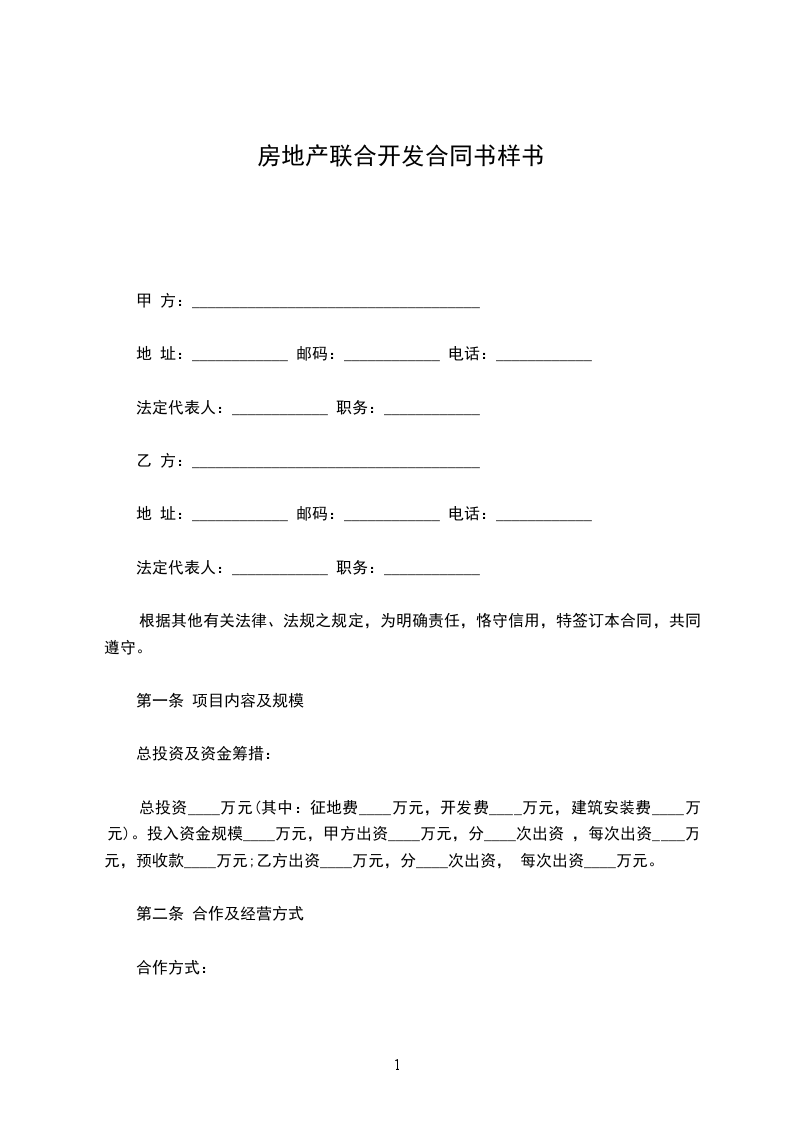 总投资____万元(其中:征地费____万元,开发费____万元,建筑安装费____万元)。投入资金规模____万元,甲方出资____万元,分____次出资 ,每次出资____万元,预收款____万元;乙方出资____万元,分____次出资, 每次出资____万元。