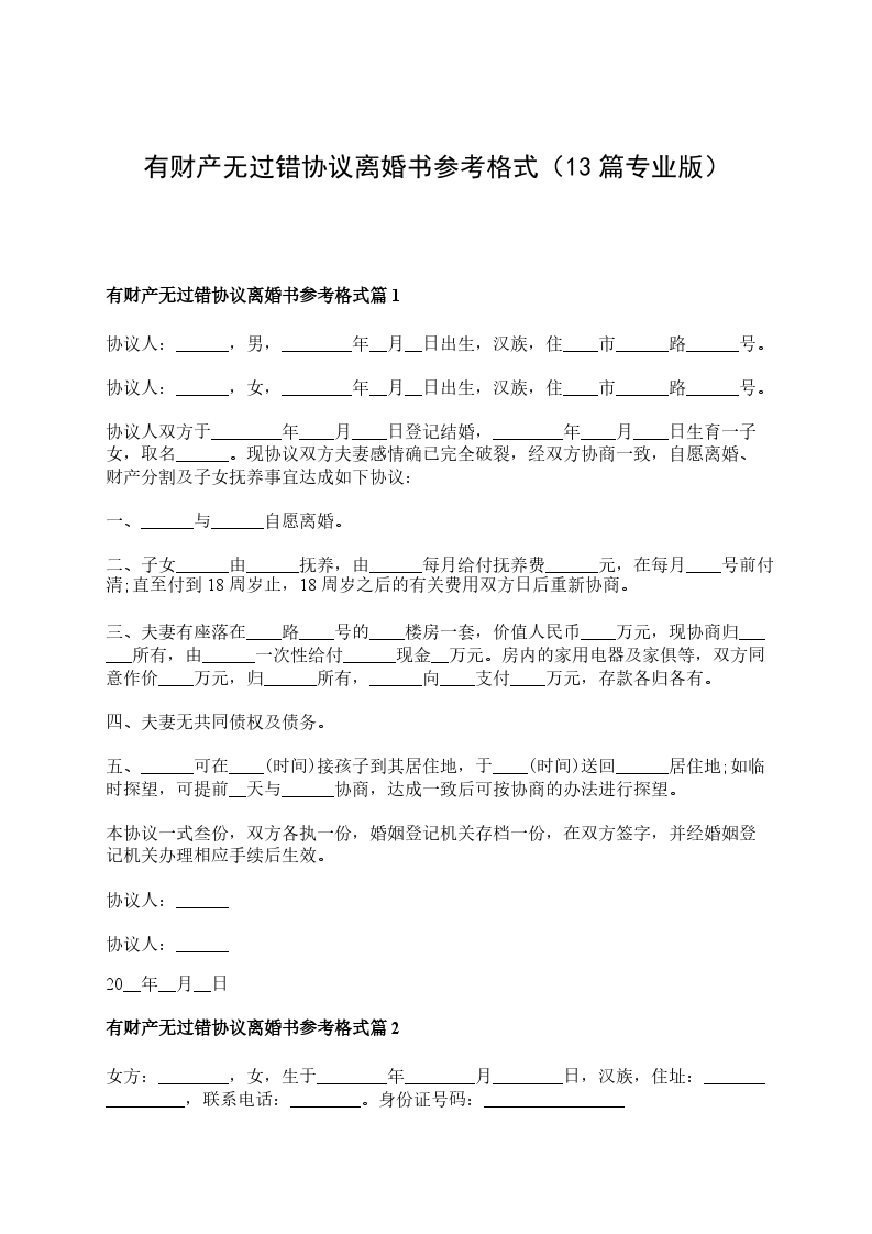 八、本协议一式三份,男、女双方各执一份,婚姻登记机关存档一份。