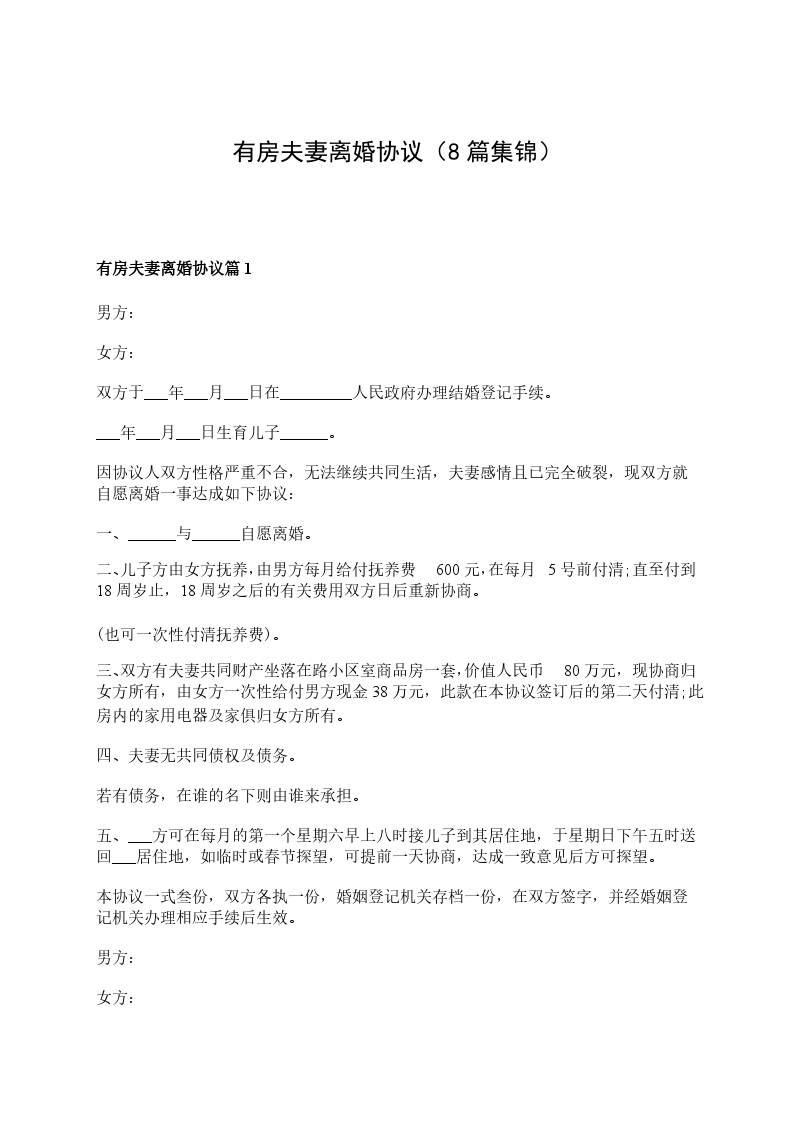 有房产夫妻离婚协议书范文篇8