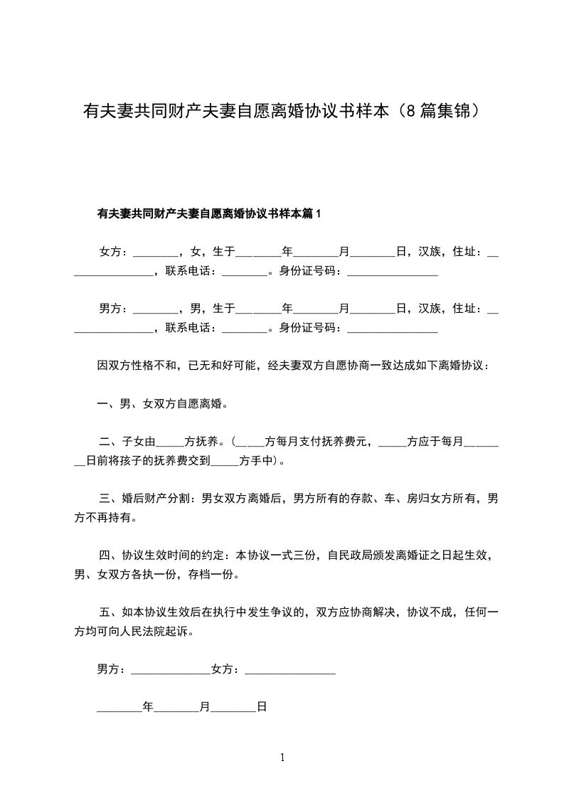 一、_______与_______自愿离婚