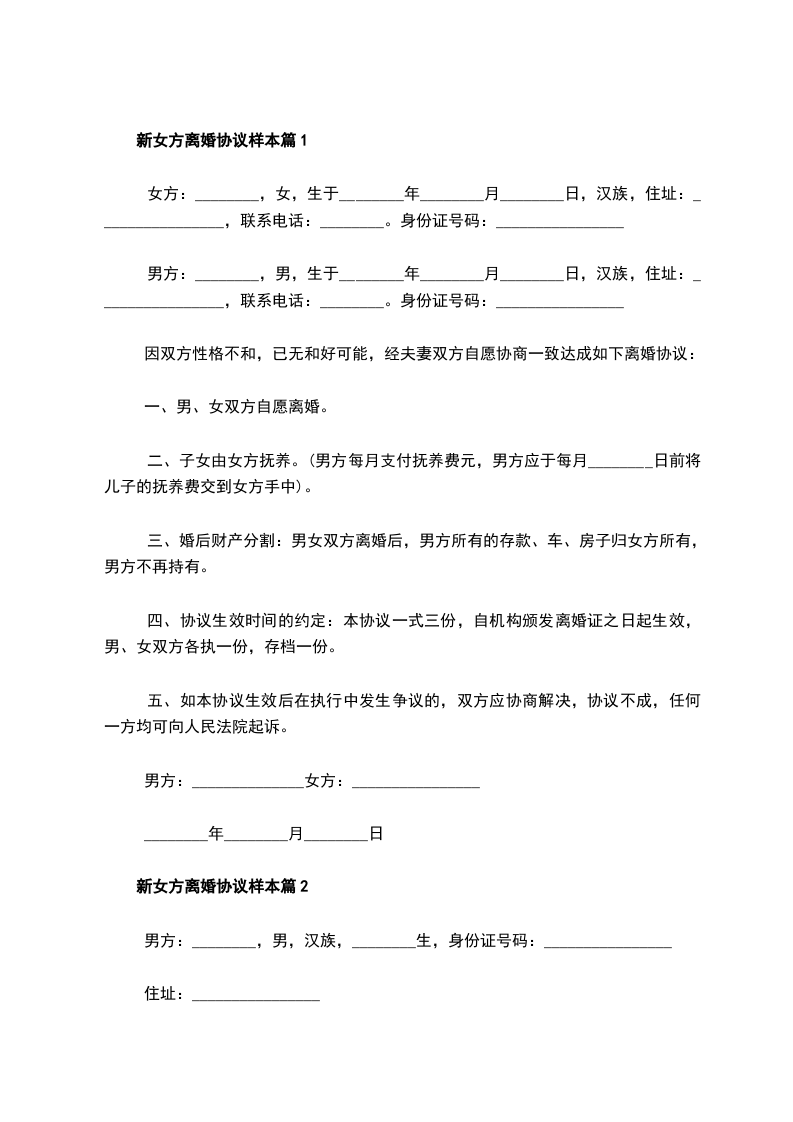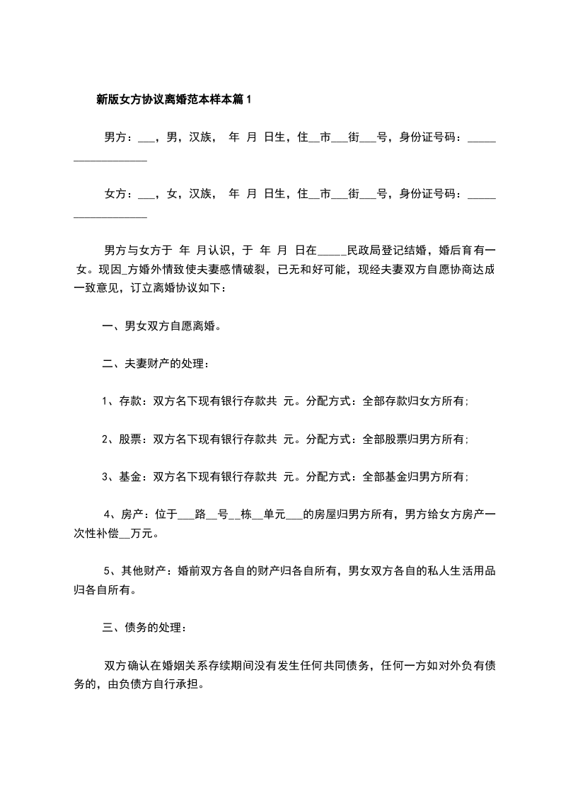 女方:________,女,生于________年________月________日,汉族,住址:________________,联系电话:________。身份证号码:________________