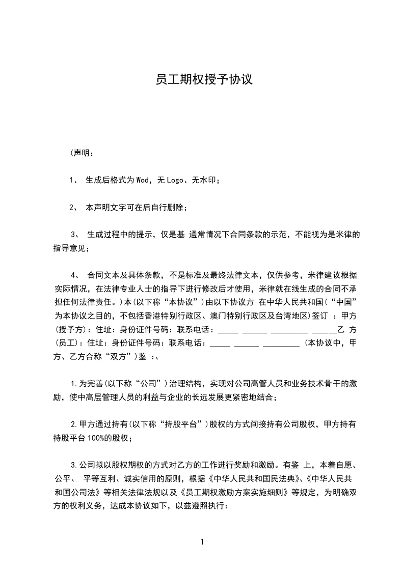 第一条甲方为按照中华人民共和国法律有效设立并合法存在的企业,乙方为中华人民共和国公民,本协议签订时乙方系甲方 ,职务为 。经由公司董事会按照《员工股权激励计划》“激励对象的进入机制”等的相关规定,在对乙方进入员工股权激励计划进行最终资格确定后,将乙方列为本次股权激励计划激励对象之一。作为《股权激励计划》激励对象之一,乙方认同甲方的发展战略和价值观,愿意将个人的前途与甲方的发展紧密结合起来,与甲方共同发展、共同进步;乙方认同《员工股权激励计划》一切内容,自愿配合甲方实施《员工股权激励计划》,自愿遵守该计划规定的所有条款及配套文件。