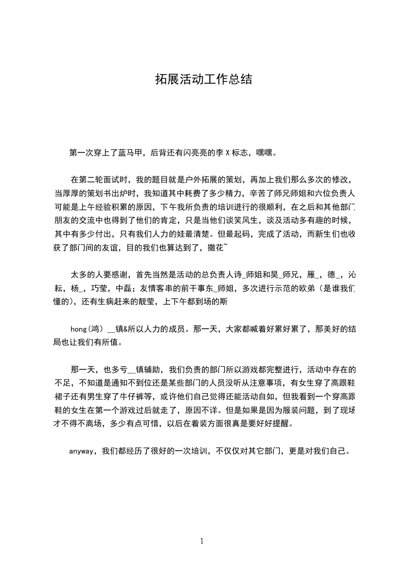 那一天,也多亏__镇辅助,我们负责的部门所以游戏都完整进行,活动中存在的不足,不知道是通知不到位还是某些部门的人员没听从注意事项,有女生穿了高跟鞋,裙子还有男生穿了牛仔裤等,或许他们自己觉得还能活动自如,但我看到一个穿高跟鞋的女生在第一个游戏过后就走了,原因不详。但是如果是因为服装问题,到了现场才不得不离场,多少有点可惜,以后在着装方面很真是要好好提醒。