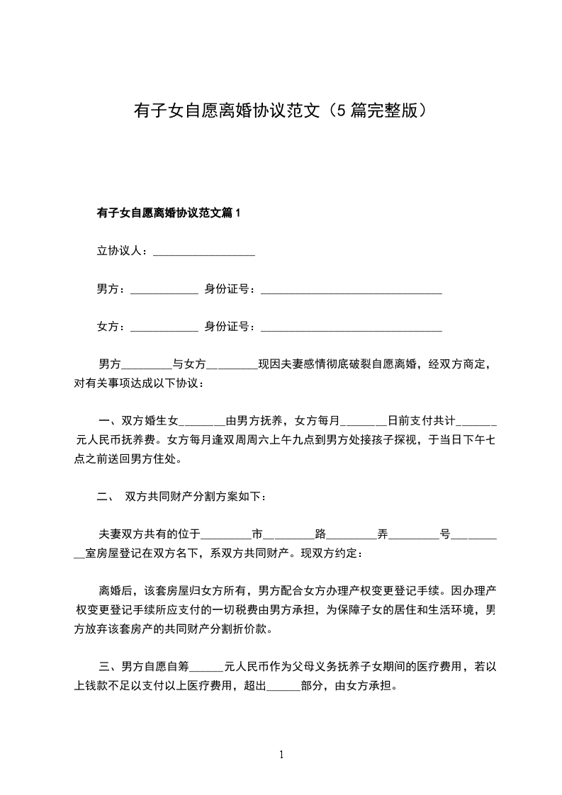男方_________与女方_________现因夫妻感情彻底破裂自愿离婚,经双方商定,对有关事项达成以下协议: