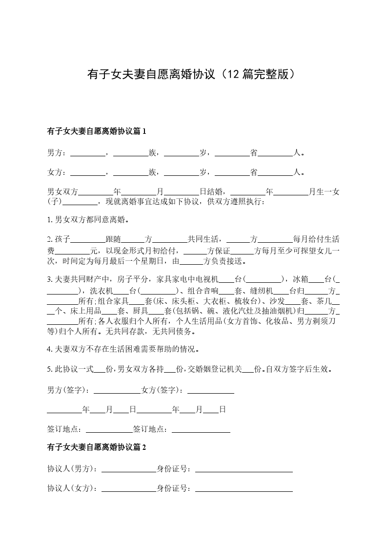 男女双方于___年__月__日在_________登记结婚,婚后于____年__月__日生育一个儿子(女儿),名______.现在夫妻双方的感情已完全破裂,已无和好的可能性,经双方协商达成一致意见,订立离婚协议如下: