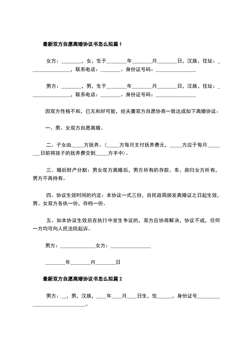 一、男方__与女方__自愿解除婚姻关系,双方自愿签订本离婚协议。孩子归男方,女方无需支付抚养费。