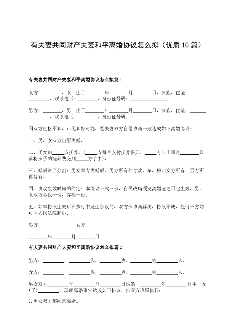 无共同债务夫妻和平协议离婚书怎么拟篇10