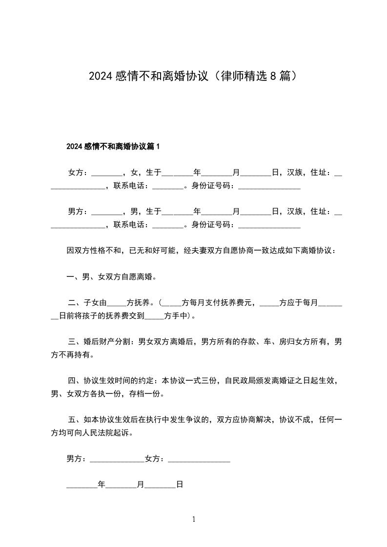 双方于__年月日在人民政府的民政部门登记结婚,因双方性格不和,无法共同生活,自愿离婚,经双方协商一致,订立离婚协议如下: