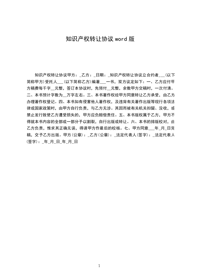 一、乙方同意以人民币______________,将设计的___________________________公司LOGO知识产权转让给甲方,转让后该LOGO的所有知识产权及使用权归甲方所有。