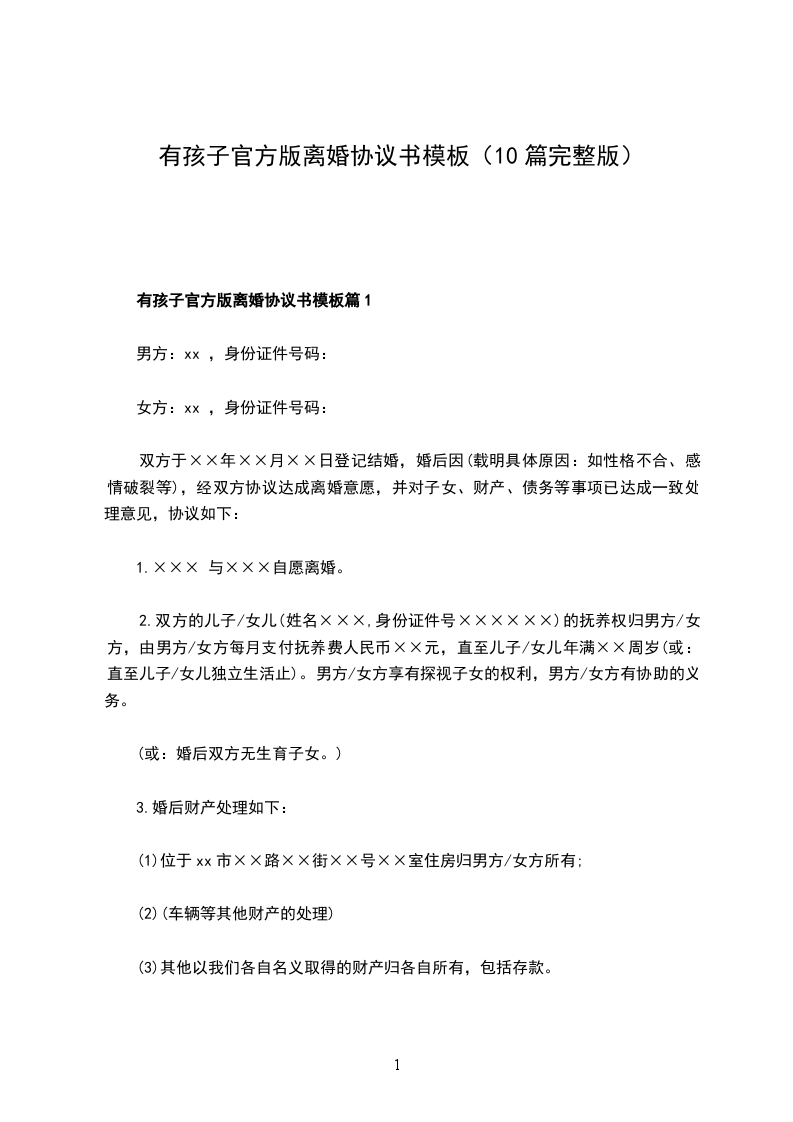 新官方版离婚协议书篇10