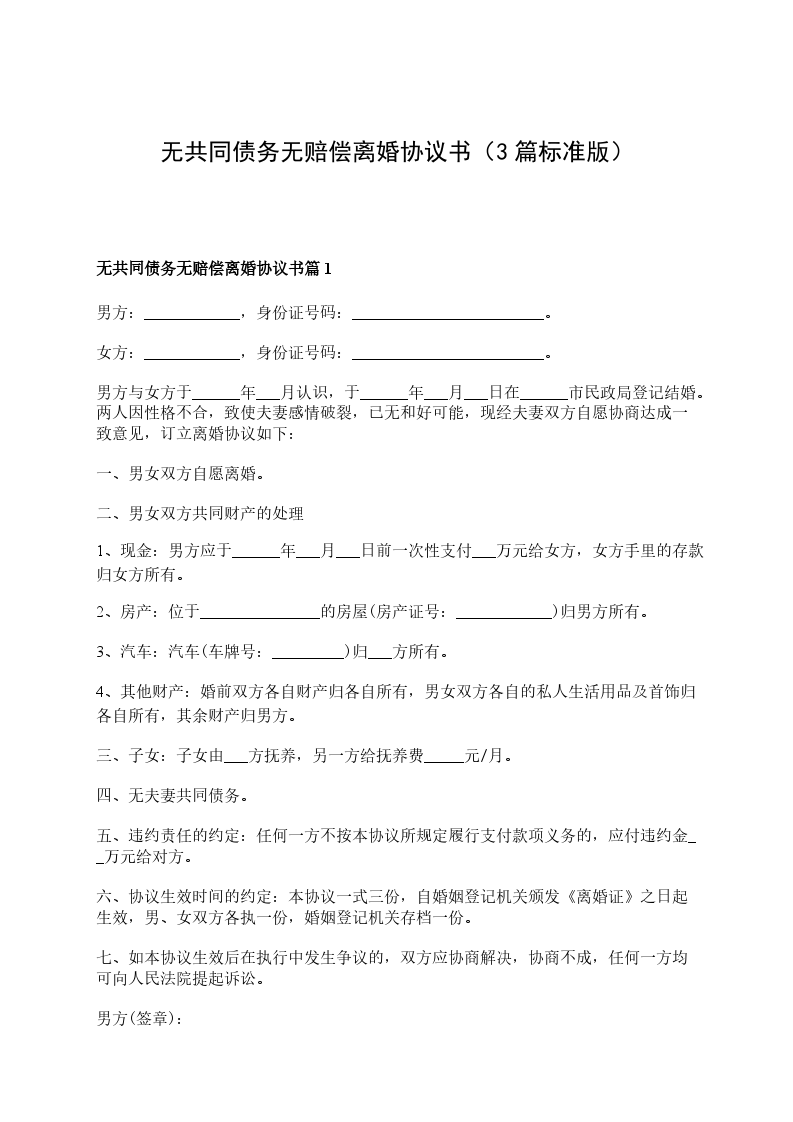 乙方:(男方):_______________,男,汉族,生于_____年__月__日,住________________________________