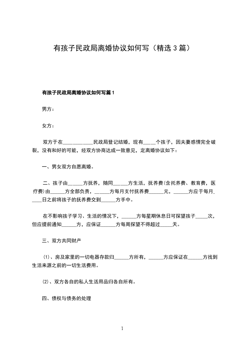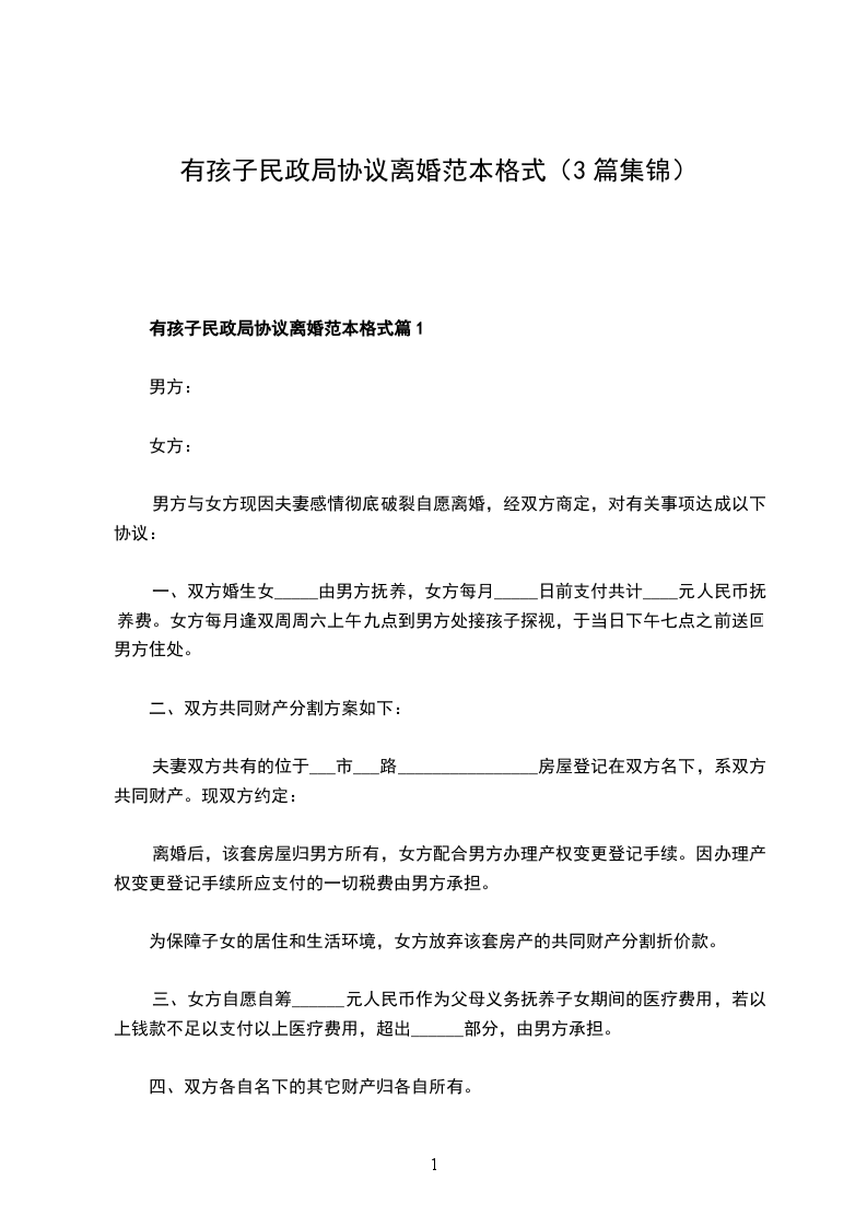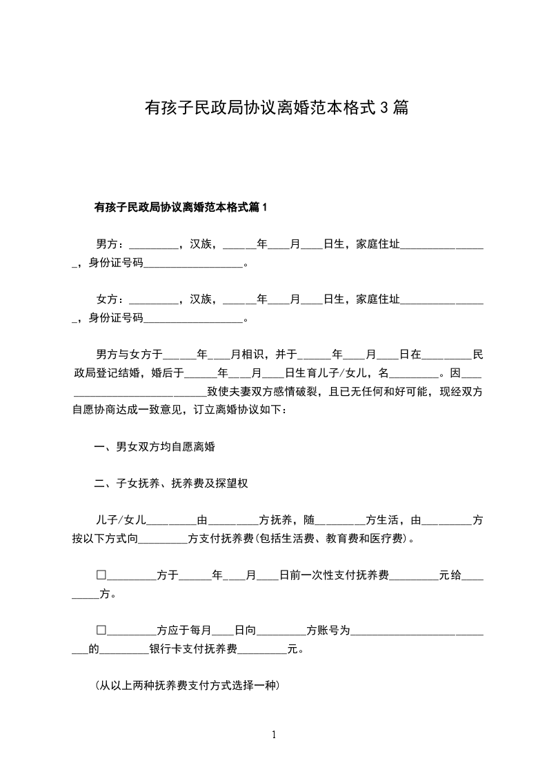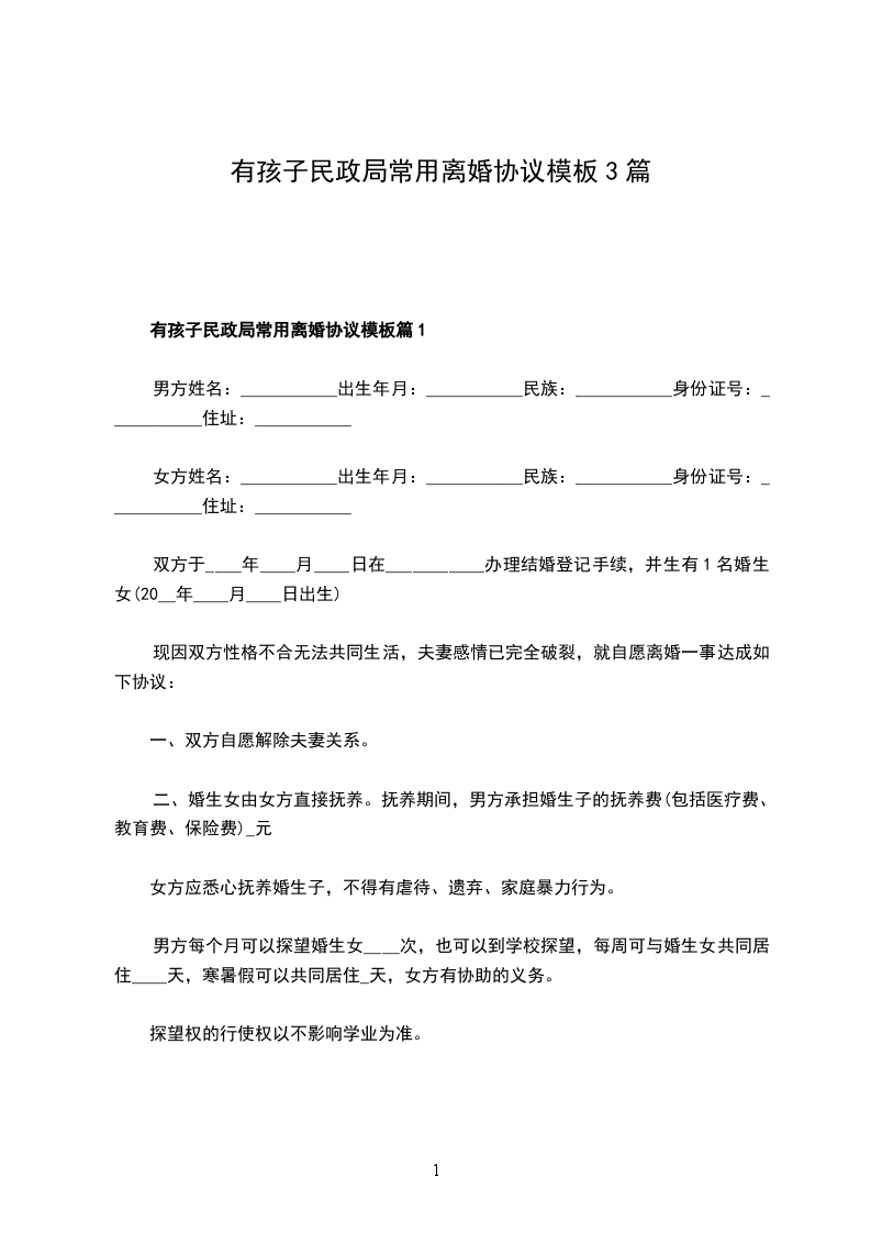 本协议一式三份。男、女双方各执一份,婚姻登记机关存档一份,自婚姻登记机颁发《离婚证》之日起生效。