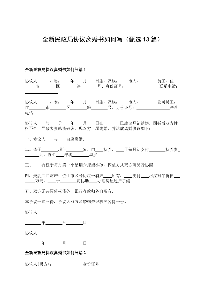 八、本协议一式三份,男、女双方各执一份,婚姻登记机关存档一份。